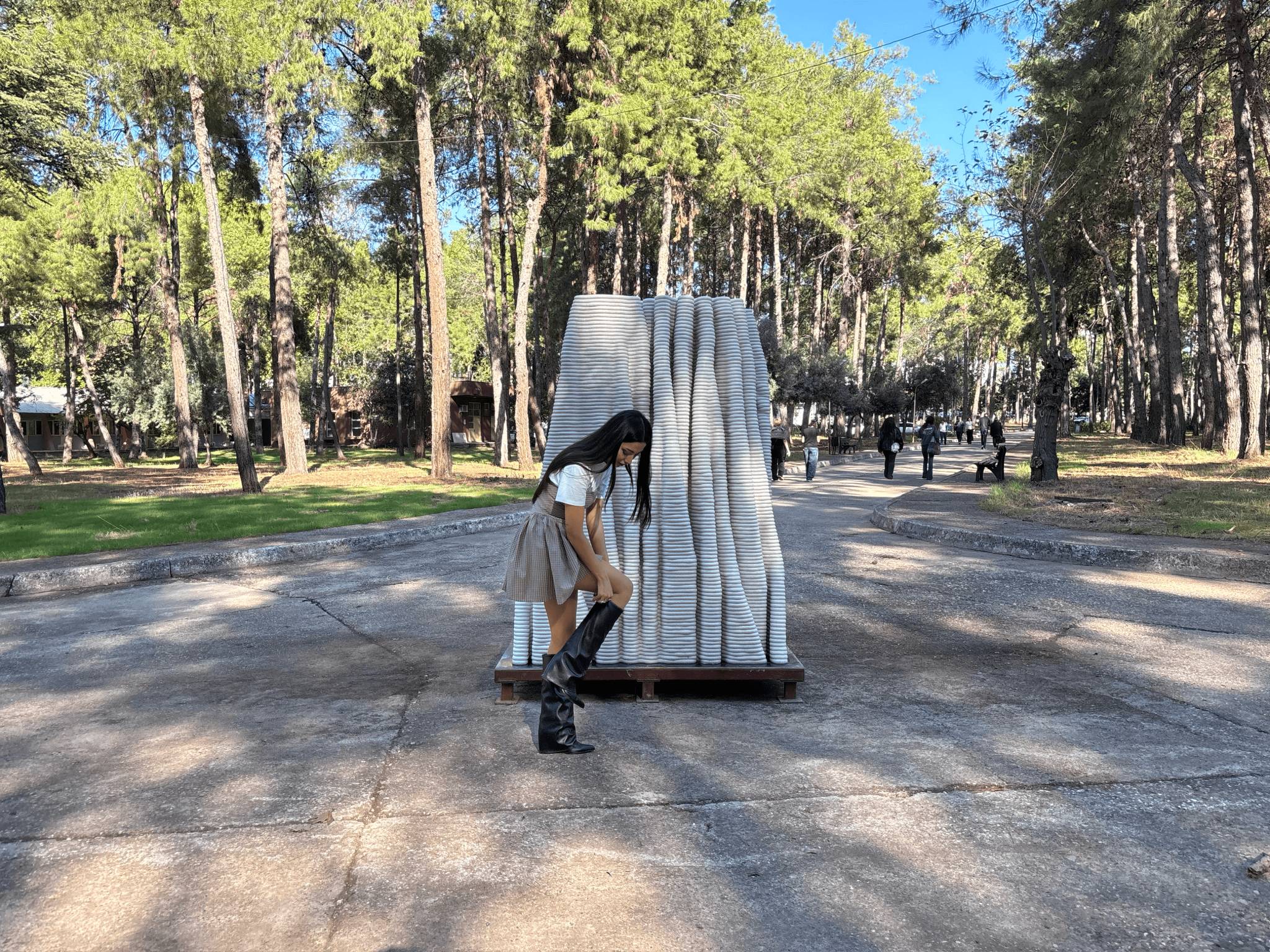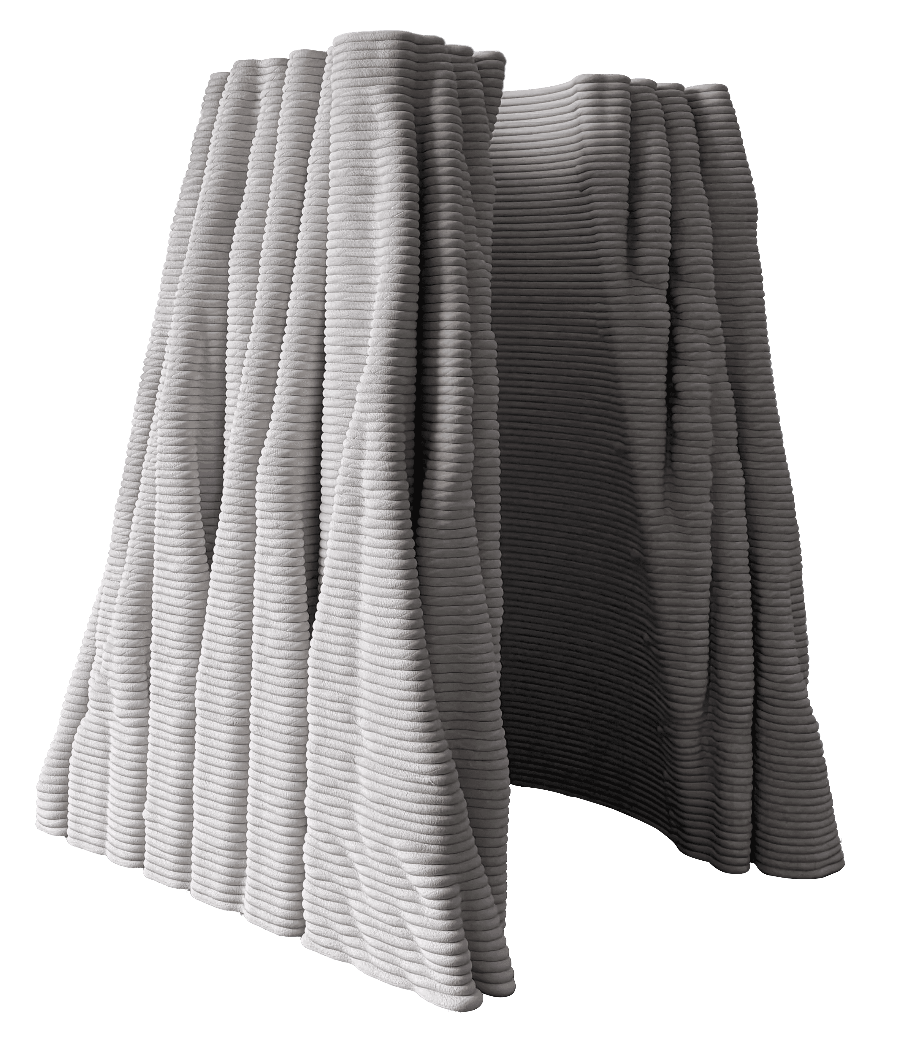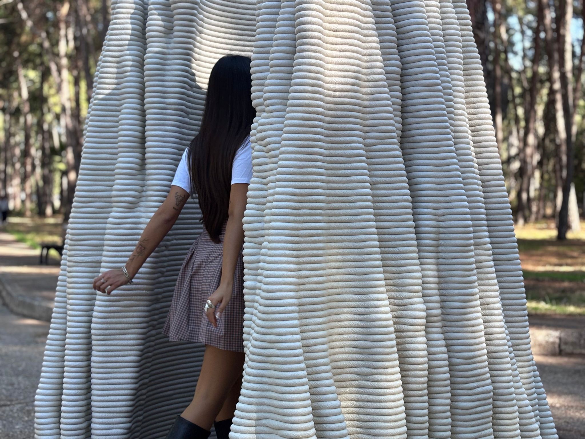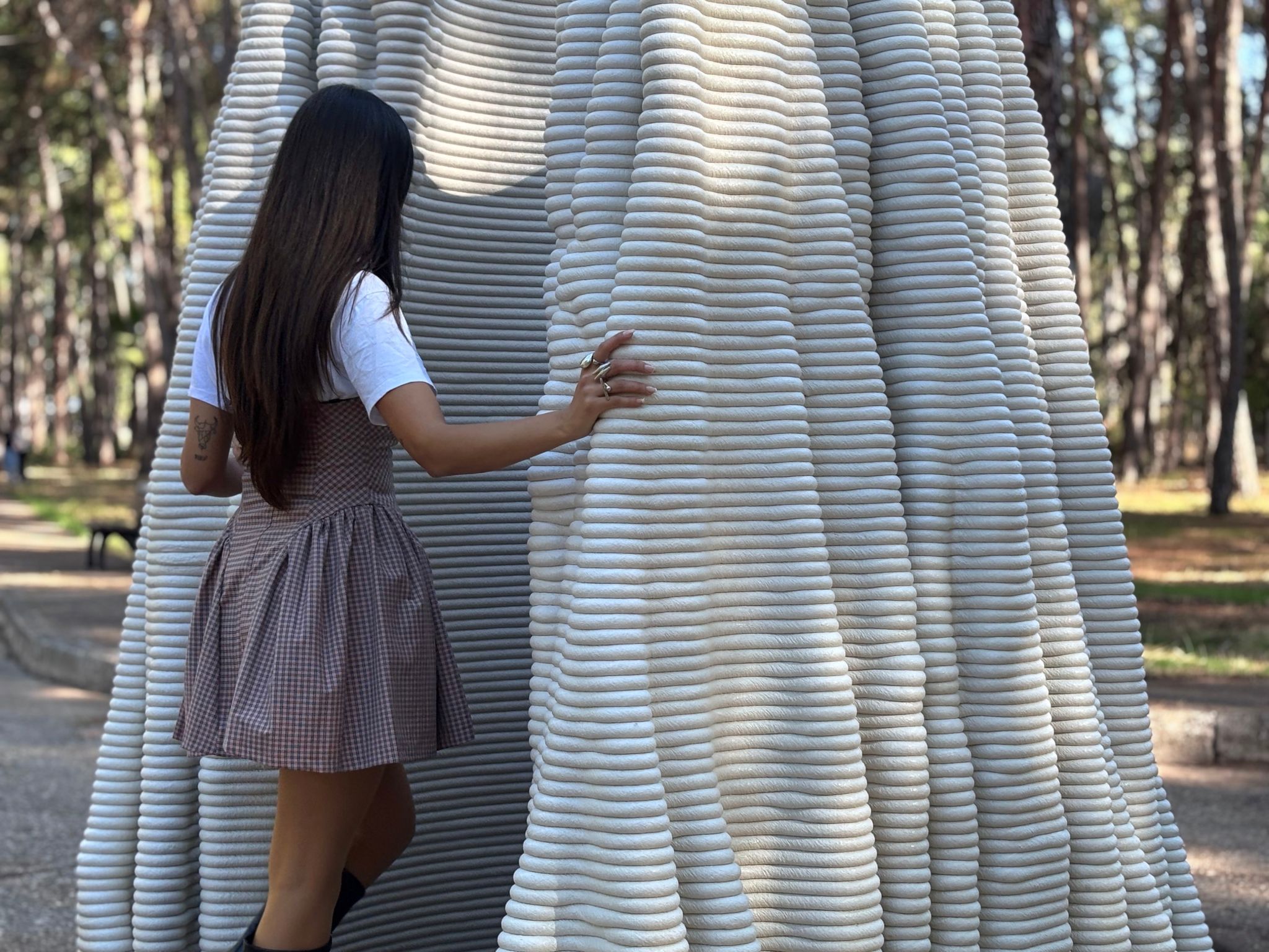 A'osis Falesie distinguished itself from previous episodes in the series through two specific characteristics. The model approaches the "cıdar," the wall condition of the tubular structure, as a loose pattern in plan rather than a resolved surface, then plays with the vertical pull and horizontal flow of the "falez," or cliff, configuration in its layering. These two moves together produce a form that reads simultaneously as geological deposit and spatial membrane, accumulating upward through a logic closer to sedimentation than construction. The work was 3D printed in concrete by a local company using robotic concrete printing technology, with various parametric models tested through the process.