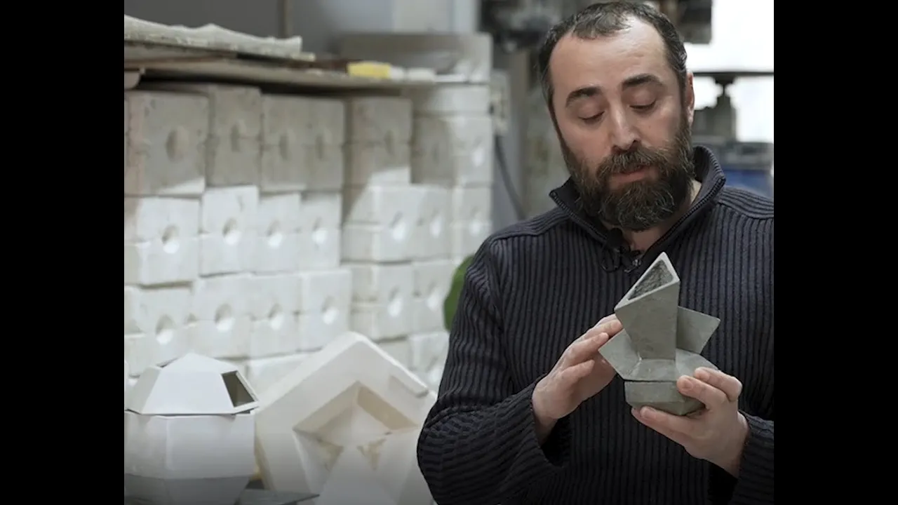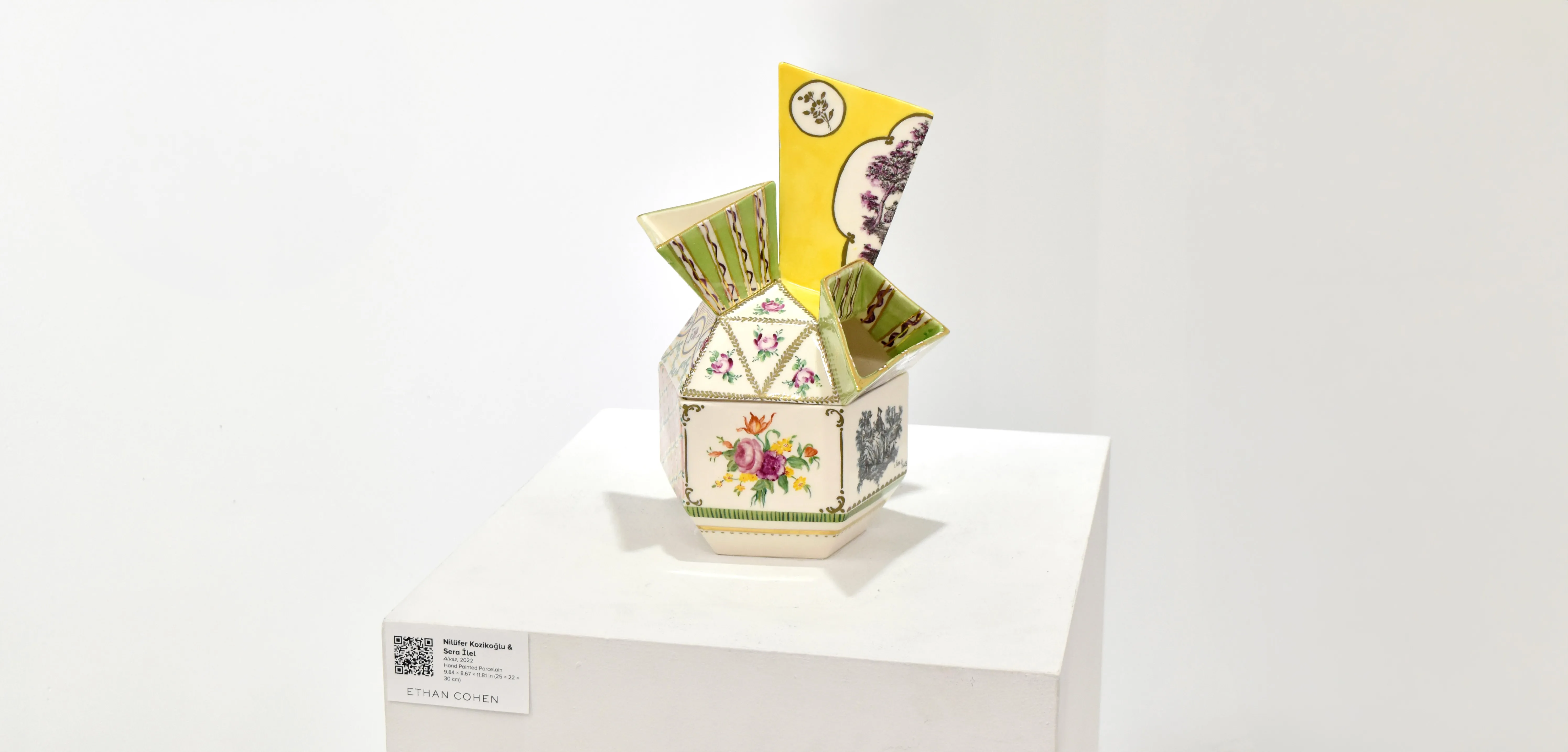 İlel's compositions are applied onto the porcelain surface through serigraphy, a printing technique that bonds the design deeply into the surface and ensures exceptional durability and color fidelity over time. The result transforms the brutalist form into a canvas where contrasting patterns meet freely and unapologetically, giving each piece a wholly unique character. No two Alvaz Amulets are alike; each one is a singular work, as much a print as it is a vessel. Handcrafted by mold master Orhan Çolakoğlu for Urban Atölye, the making of each piece is a collaboration between considered design and instinctive artistic expression.