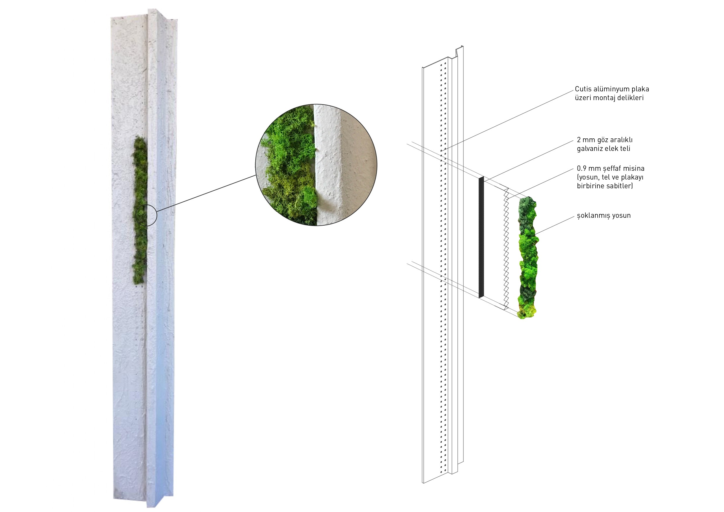 Cutis is a design concept and installation system developed by Nilüfer Kozikoğlu and Urban Atölye, taking its name from the Latin word for living skin. The name, originally coined by architect Saro Zorlu, captures the core intent of the work: to mimic the textures and resilience of natural surfaces through an innovative composite of metal structures, cement mixtures, and plant-based elements, assembled using plastering and casting techniques. Cutis is Urban Atölye's general name for applications organized around the themes of vitality and living texture, where metal surfaces and components are composed with cementitious coatings developed in collaboration with Saro Zorlu and the Laminate-Composite Coating Hands-on Workshop.
