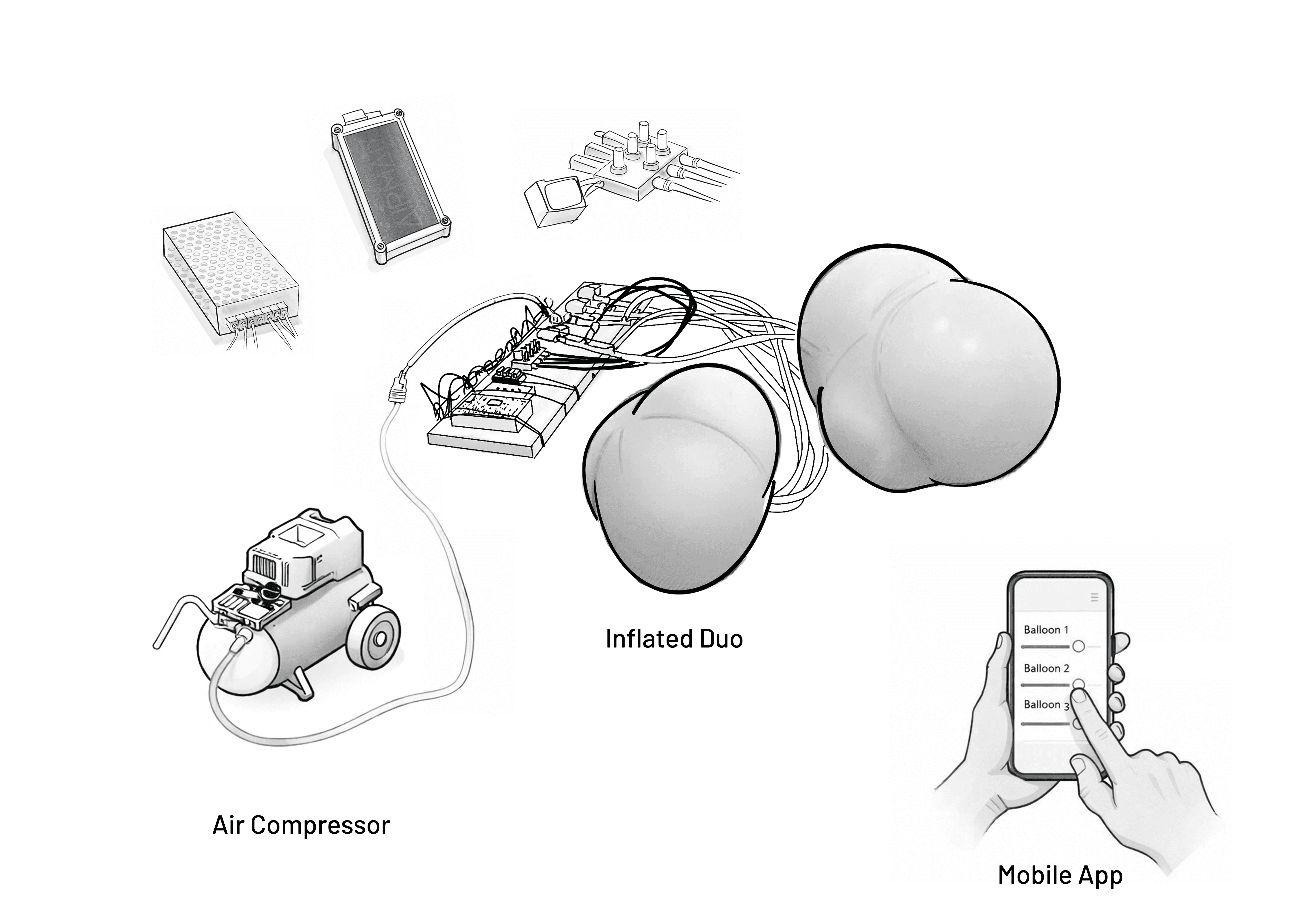The visual and conceptual interplay within "Inflated Duo" is striking. Each balloon acts as an organelle, representing individual components of a larger organism, while the entire setup symbolizes a cohesive yet complex body. The fluctuating pressure within the balloons serves as a metaphor for the dynamic relationships between parts and the whole, evoking notions of interdependence and connectivity. The artwork encourages viewers to contemplate the balance between autonomy and reliance, as each balloon expands and contracts in response to the app's commands.