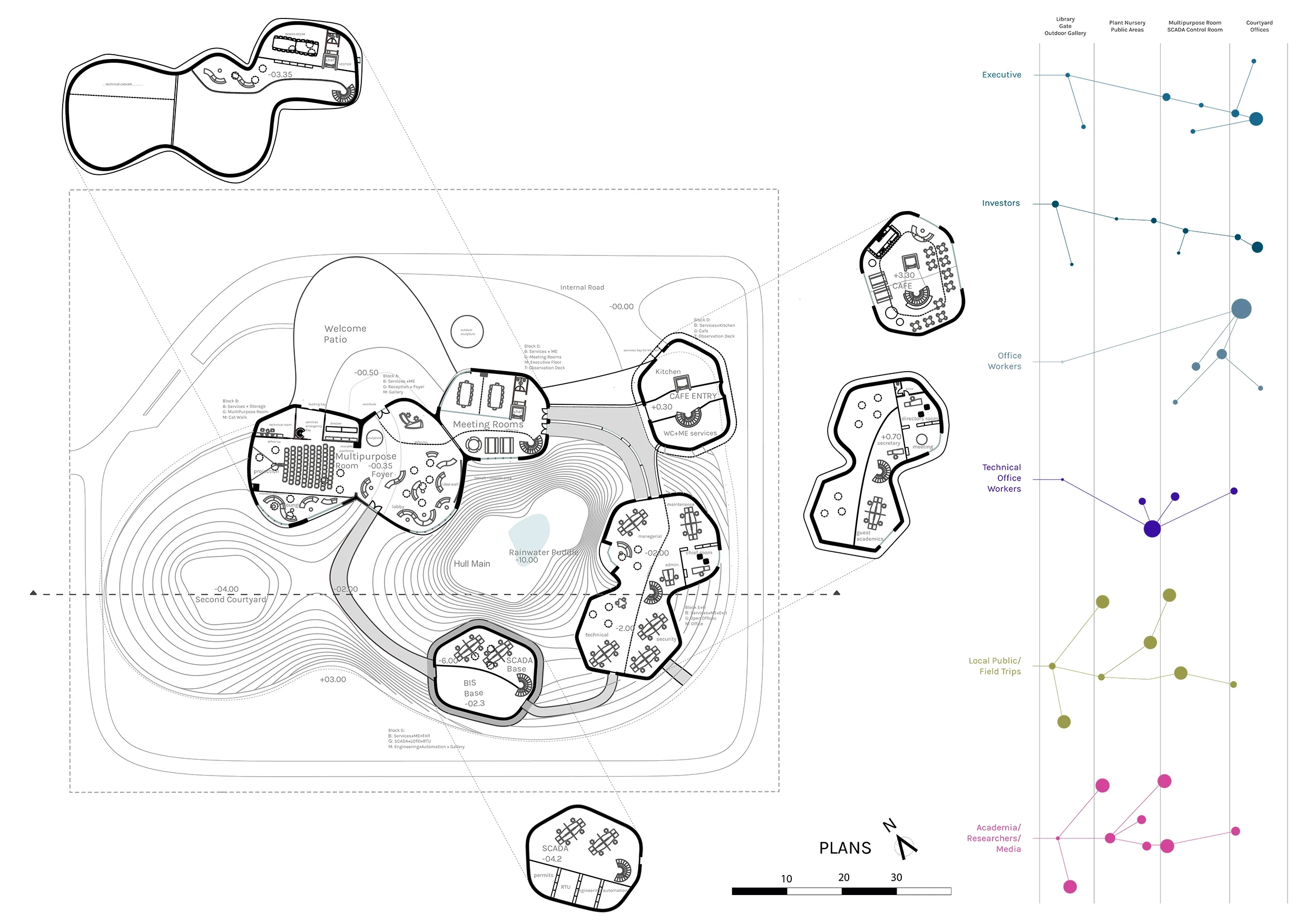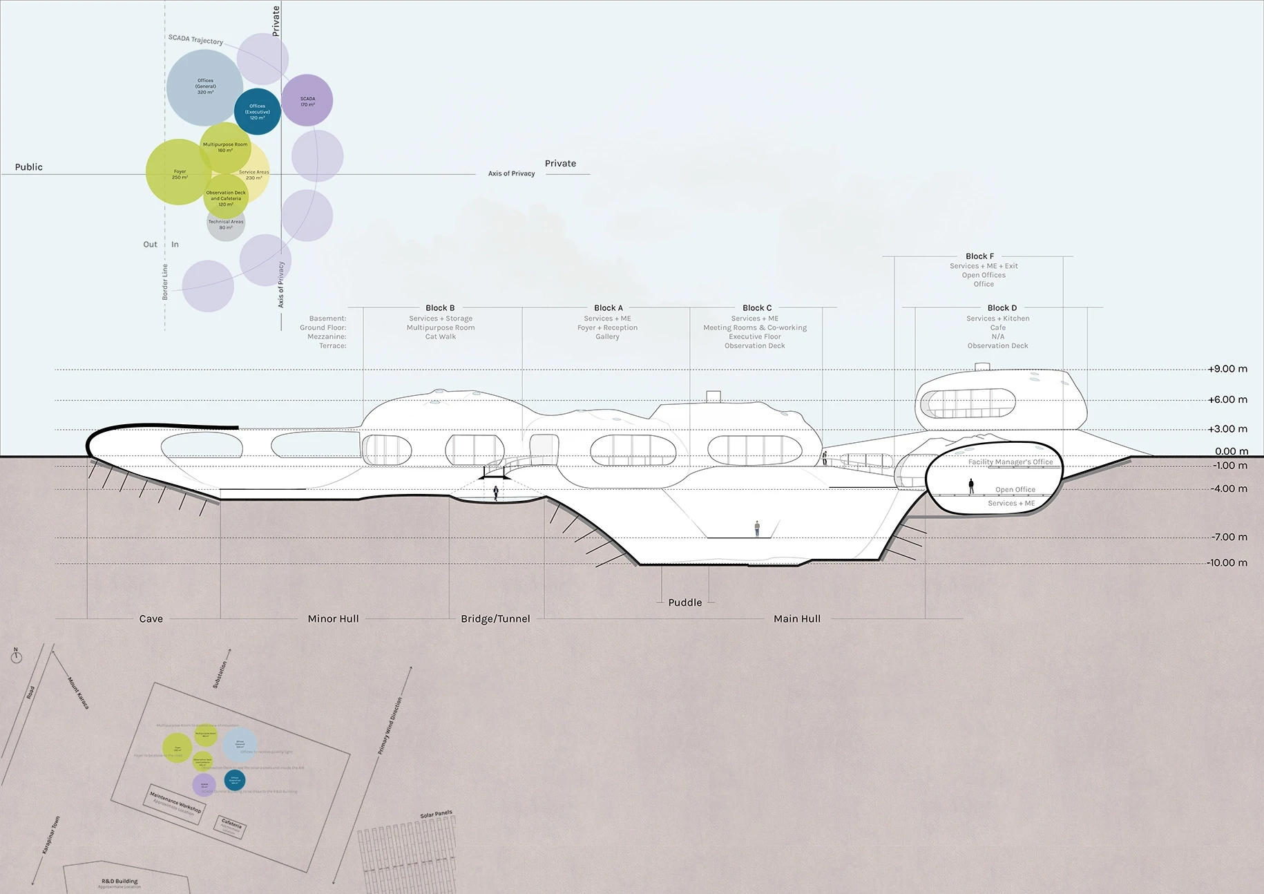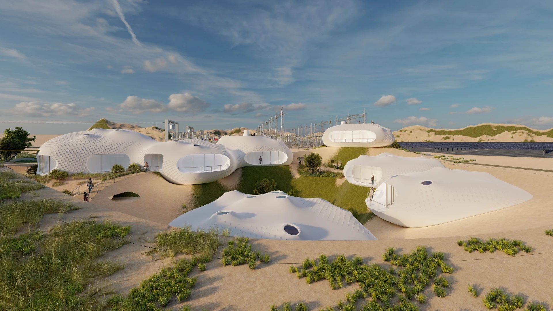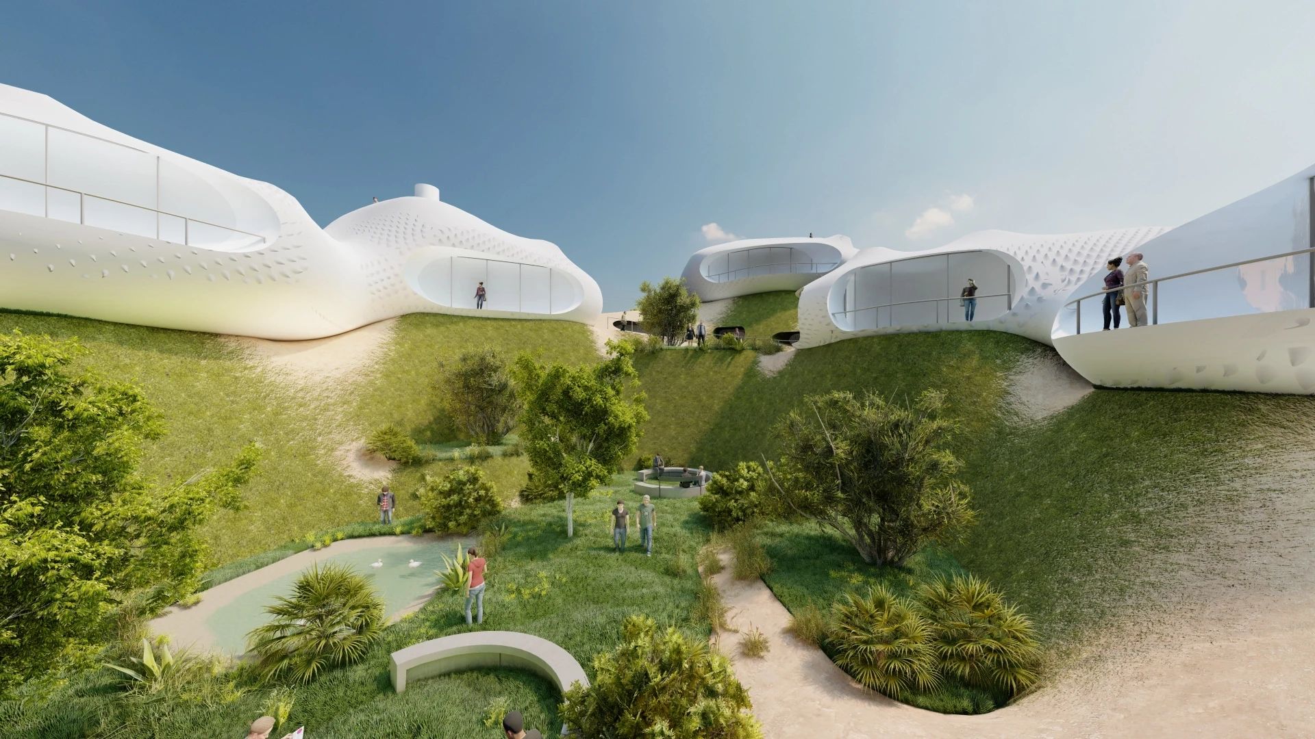 The SOLARK SCADA and Research Center, awarded the Honorary Mention, is a renewable energy facility and Sustainability Knowledge Hub set within Türkiye's only desert, in Konya. Conceived as a contemporary Noah's Ark, the project takes the form of a distributed campus of capsule-like modules, some above ground and some buried, embedded into the terrain through parametric design and innovative construction. The center serves as a control point for solar, wind, and water infrastructure while hosting an expanding community of researchers, students, educators, and local residents engaged in programs ranging from advanced agriculture to environmental resilience.